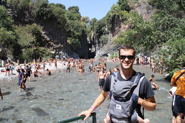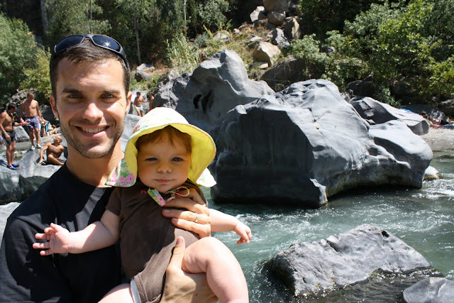 We chose to go to Gole dell’Alcantara. Gole means “gorge” in Italian. The guidebooks described it as a green and lovely place with a cool, rushing stream. Without much more to go on, we got in the rental car and took off along winding Sicilian roads.