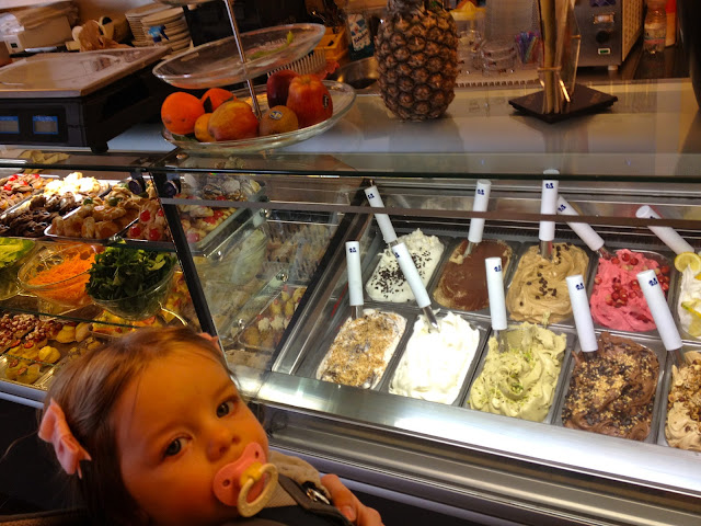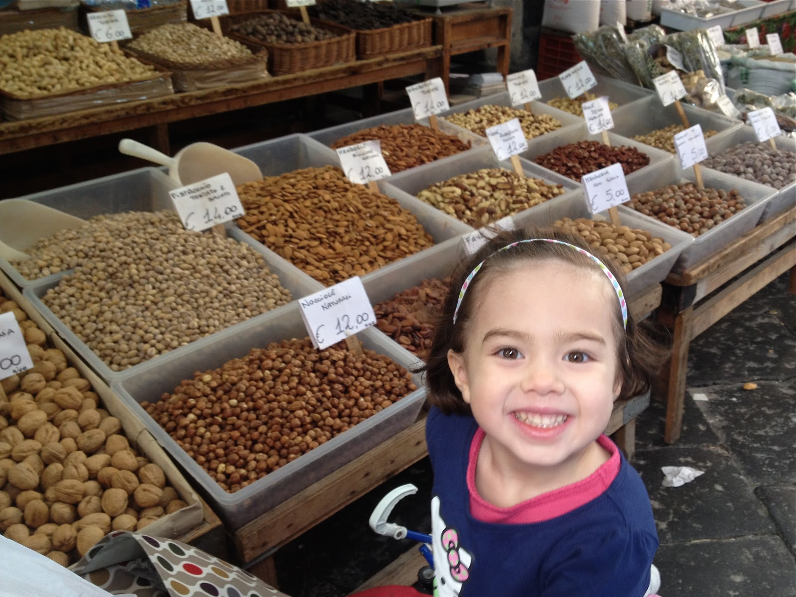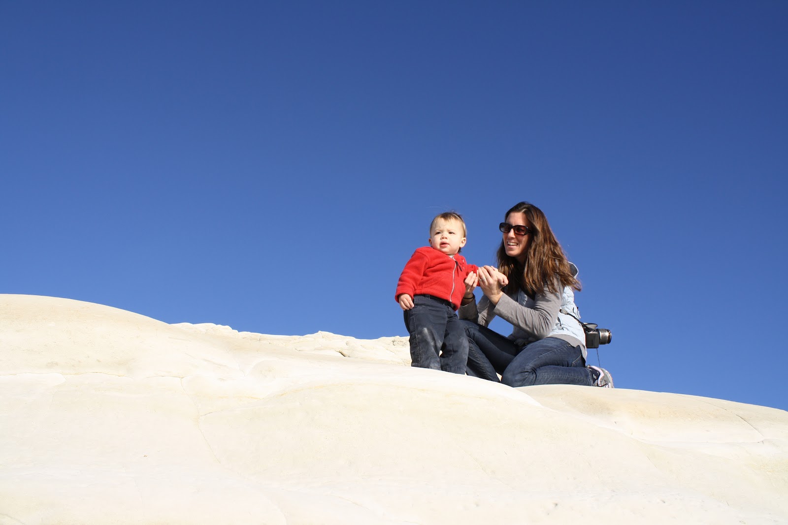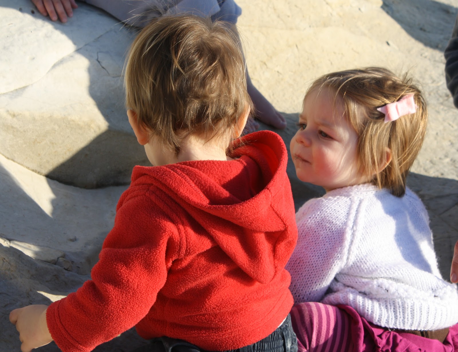 We stopped for lunch at a little cafe on the park grounds. The kids went to work cracking open last season’s almonds with their dad, Josh. Caleb also helped out by holding Lena. They both need more practice, I think.