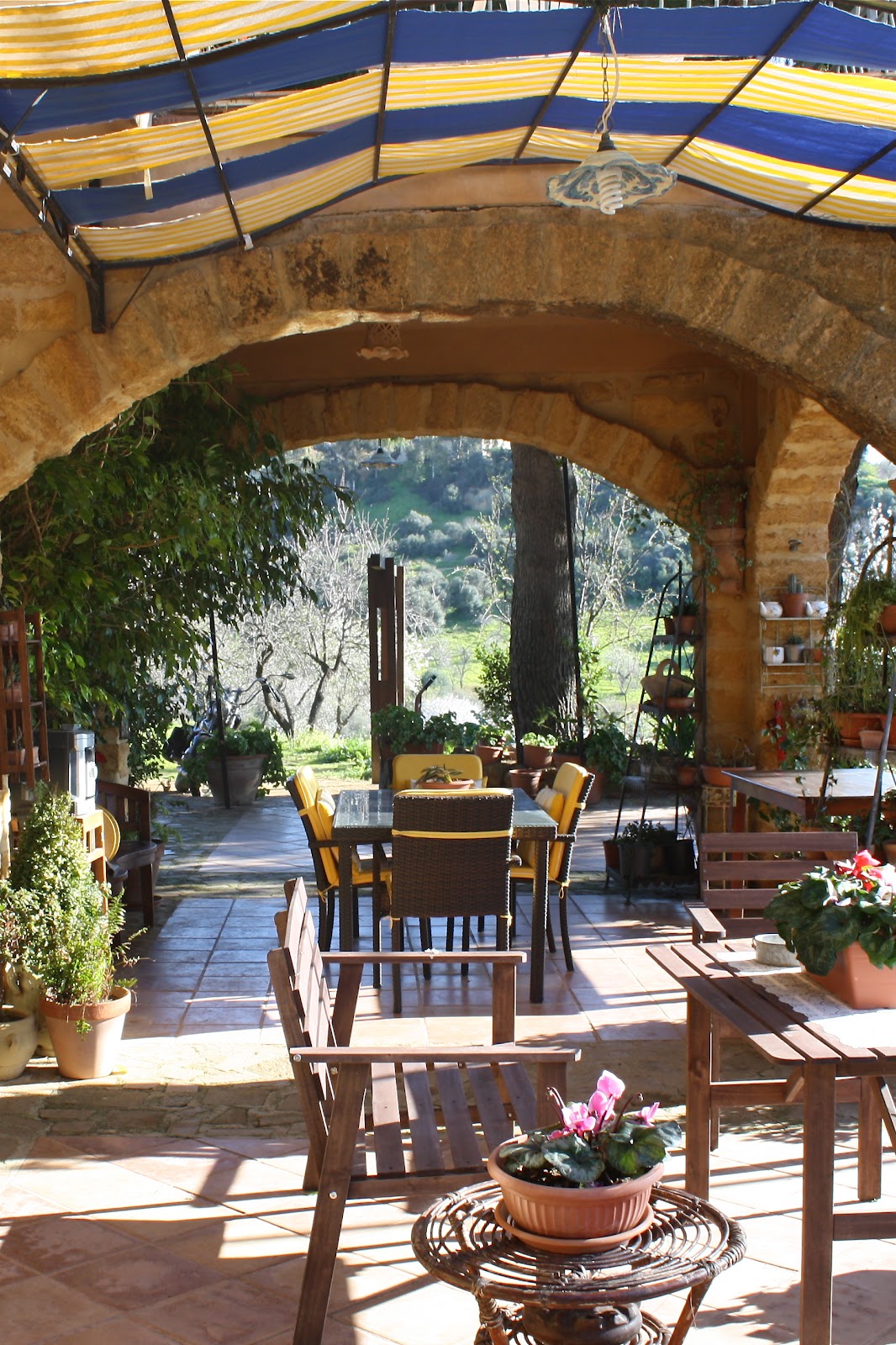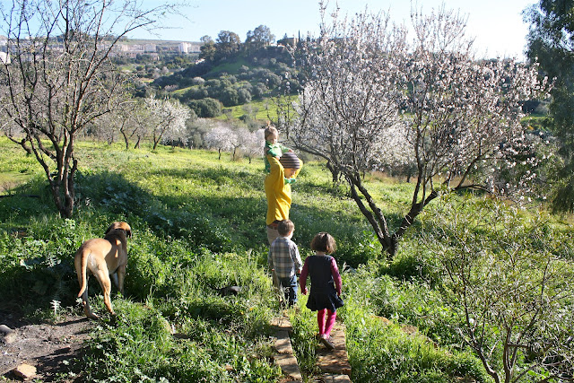 Our first morning there we explored the grounds before breakfast. There were so many almond trees in blossom! When our group had assembled, we drank lattes over homemade jam (apricot, peach, and prickly pear), fresh rolls, and blood oranges.