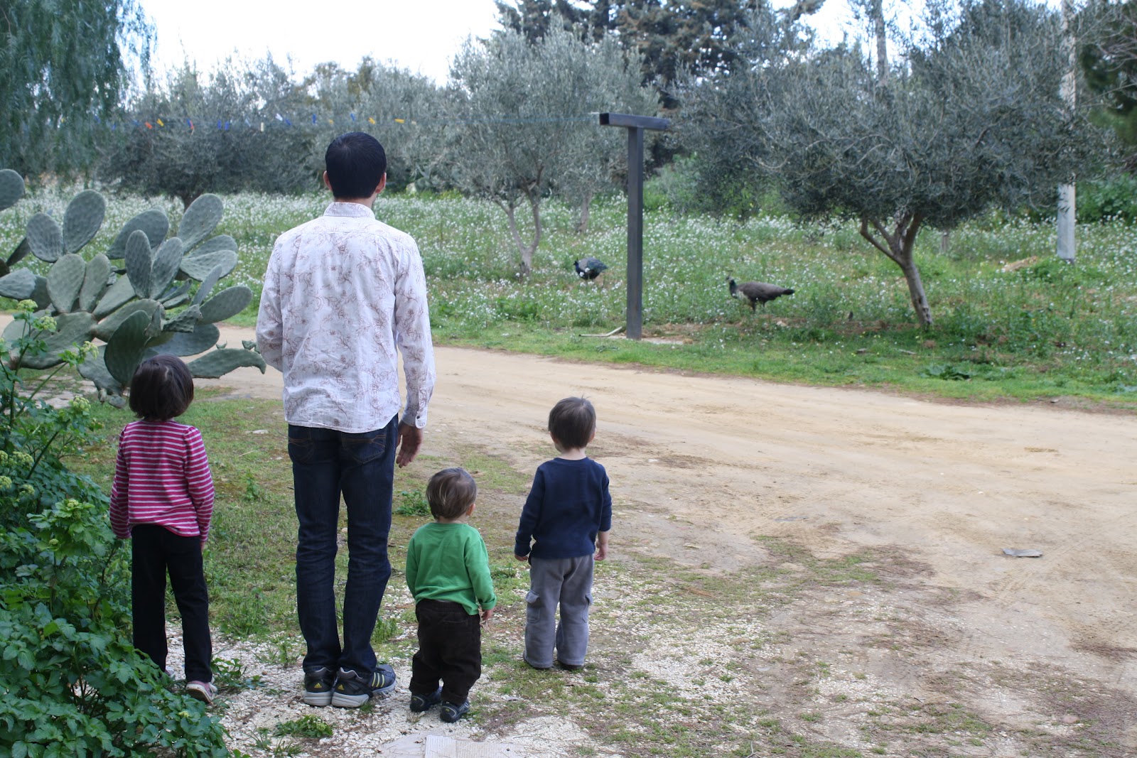 Finally we decided to head home after all. One of the peacocks turned up his feathers at the idea! Quite a farewell.