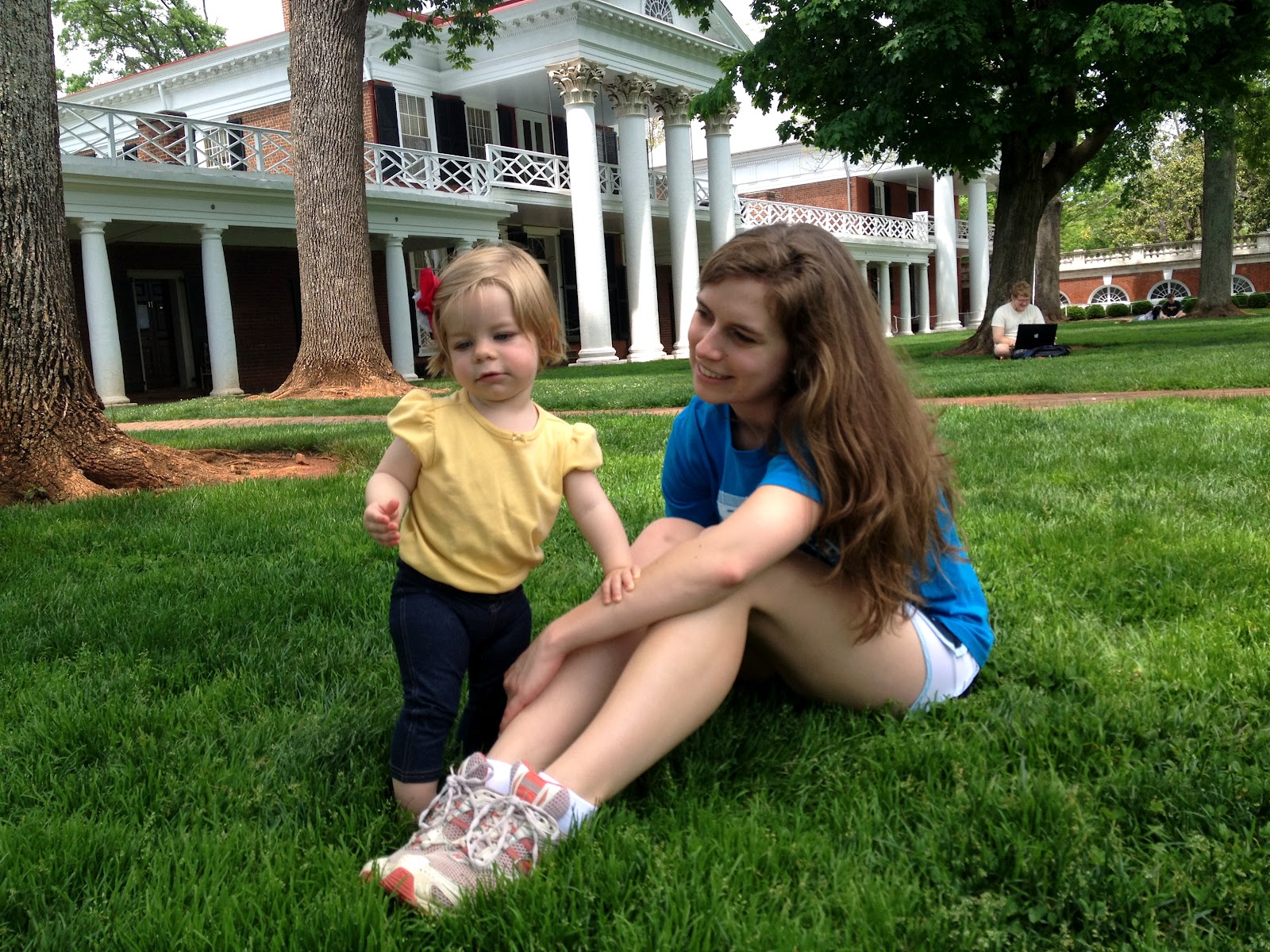 After lunch we went over to Alderman library to visit Auntie Em. She helped Lena walk up the steps of Alderman to imagine what it would be like in 2029 when Lena starts school at UVA.