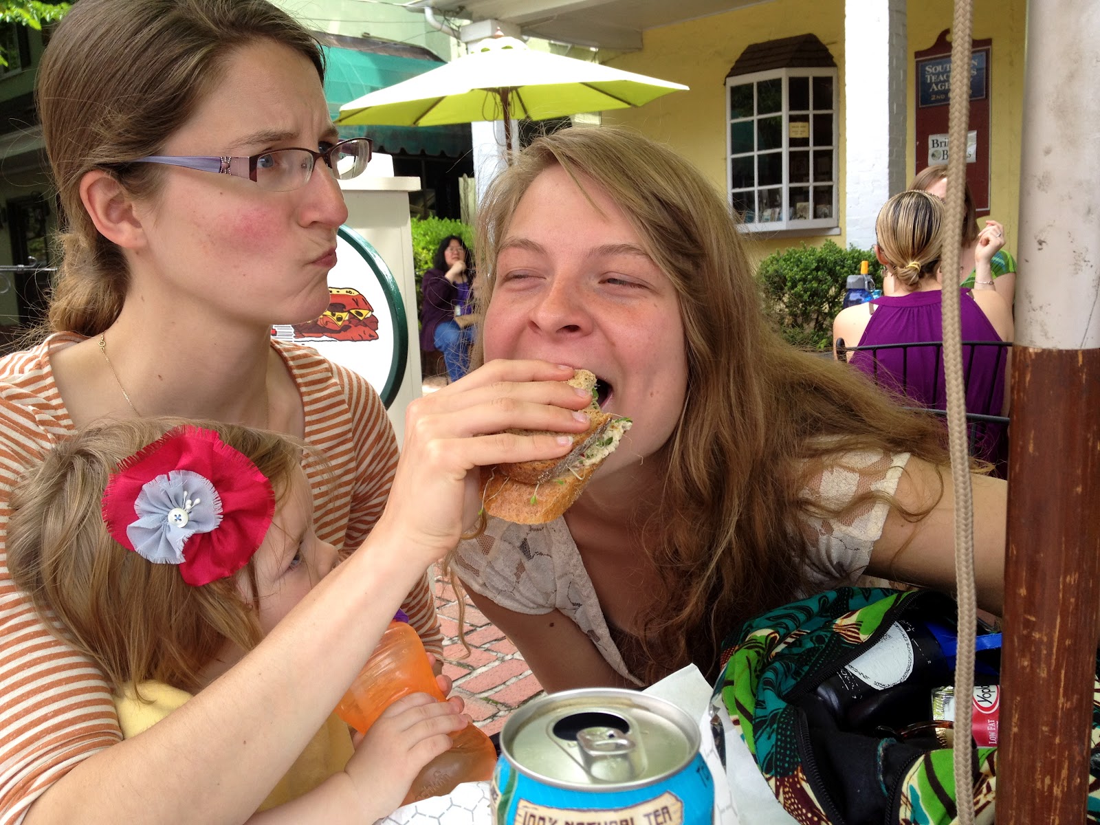 Aunt Julia took a break from studying to come say hi! And eat some of Mama’s amazing sandwich: tuna on wheat with sprouts.