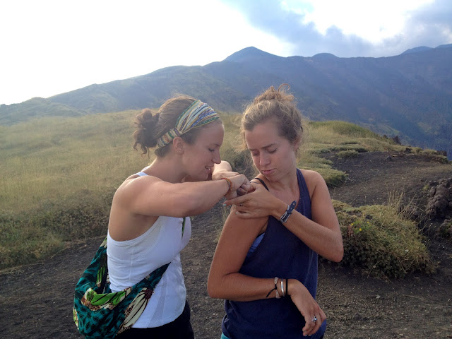 Jess and Sarah headed up the volcano a little farther to see a plaque Jess had read about in the guidebook.  Along the way they came across a flock of goats grazing on the hillside.  Sarah took a stunning photo of them.