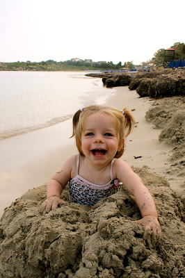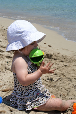 She loved her handmade pool! She also clearly loved the beach, and her friends, and the sunshine. Now whenever Lena sees a bottle of sunscreen, she asks me to pop off the lid and then carefully dabs her fingertip in it and wipes it on her face. She’s ready for summertime in Sicily, I think!