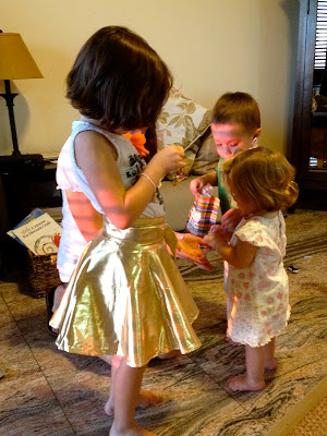 Say hello to our little Dorothy from The Wizard of Oz! She got to show off her costume last night at a fun Halloween party some friends of ours hosted. I think she was deee-lighted about all the toys and kids and couldn’t care less about anything else, including the candy. We’ll keep the illusion going for another year or two that Halloween has nothing to do with candy…