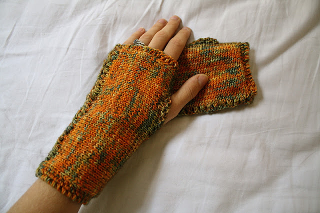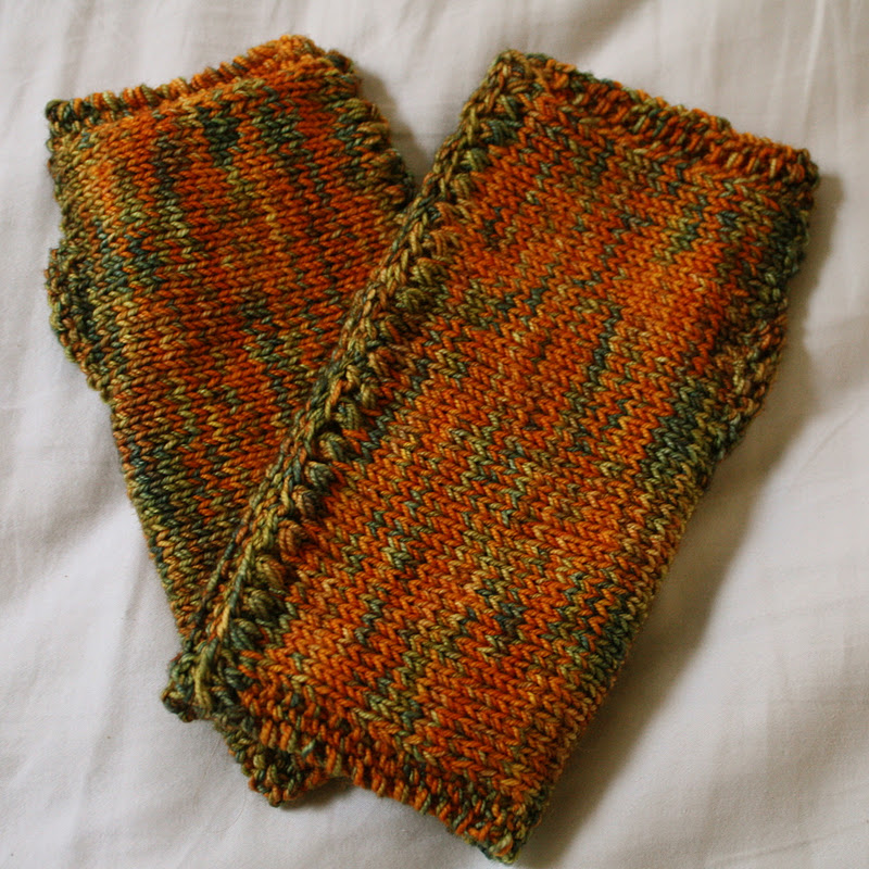 Recently I went on a fingerless-gloves-knitting-kick and made four pairs of gloves for friends and sisters-in-law. They love them! The orange and green gloves were made with the autumnal Blue Ridge in mind. I used a fine Italian merino wool called Ella Rae; it’s my new favorite yarn and the colors are magnificent.