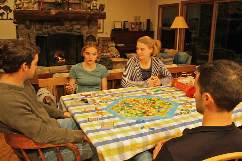 And then, of course, another hard-fought Settlers of Catan game later that night. The lovely blonde on the right, Deborah, won for the very first time!
