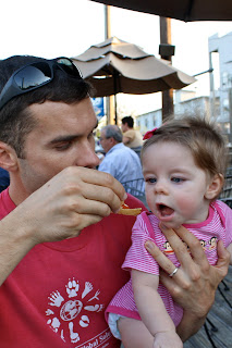 Once at the brewery, with a glass of Whithead Wheat and a pint of stout, we started into some chips and salsa.  Lena was immediately focused.