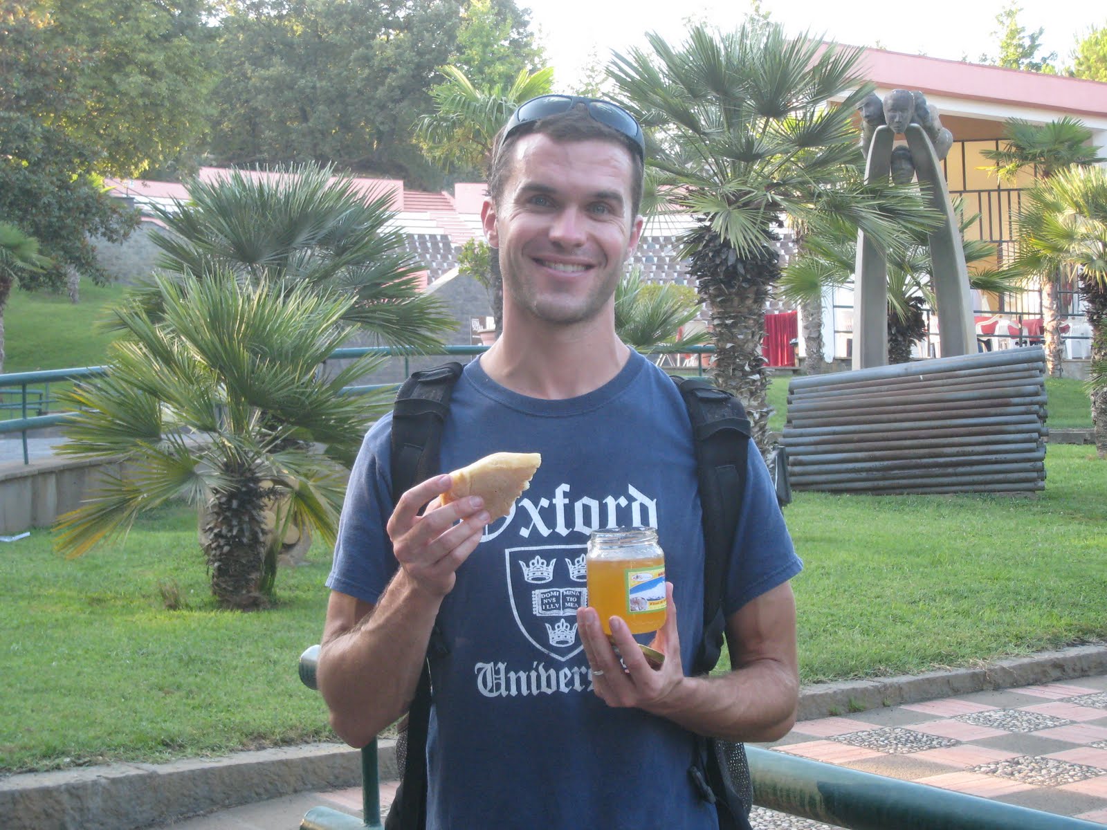 We eventually reached a rest stop after about 2 hours of climbing. The cable car stopped here and everyone spilled out into a restaurant and little souvenir area. Jars of honey sat on a counter for taste testing, and we sampled a half-dozen different flavors: orange and lemon and eucalyptus and nut. All so removed from this desolate place.