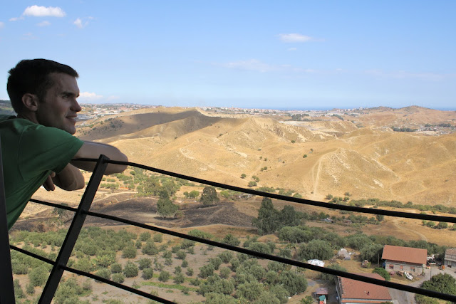 Now out to the balcony. Elliott looks out over the valley to the Mediterranean.