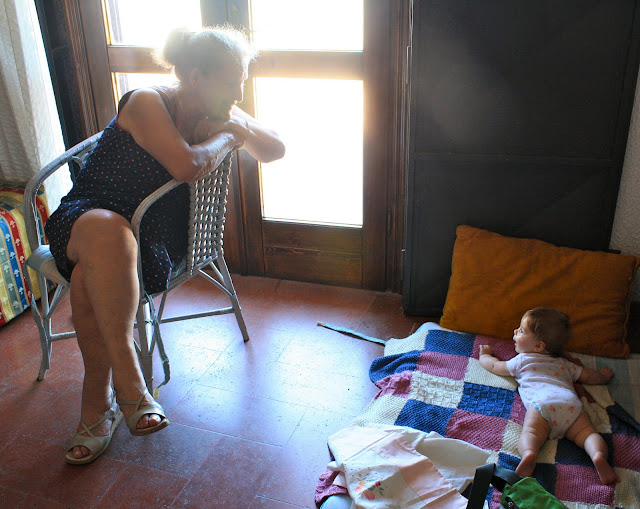 After lunch, Elliott and I took pictures downstairs while Lena talked to our landlady in her apartment: