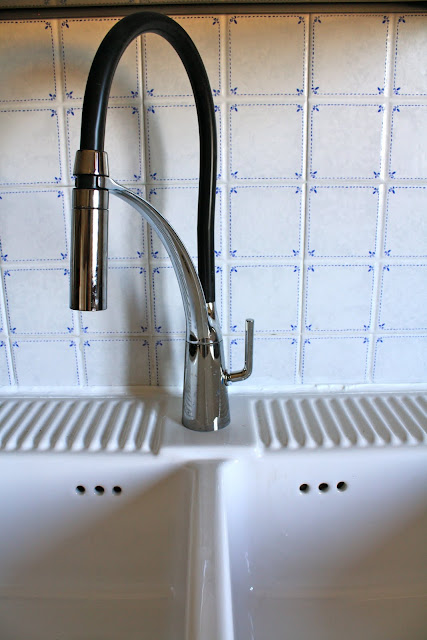 Detail of our sink, faucet, and the beautiful backsplash that our landlady chose for us.
