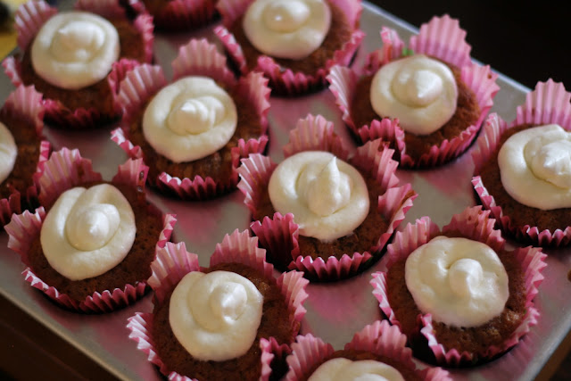 Later we returned to the kitchen for Lena’s first bite of cake in her life: a carrot cake cupcake.