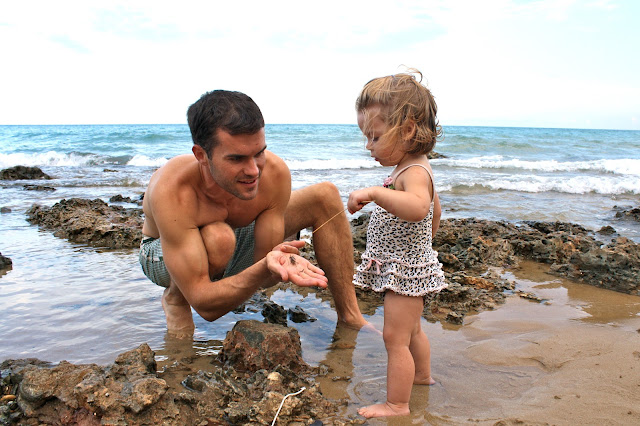 Enjoy some photos below… including my second-on-the-blog-ever belly shot!  And Lena giving kisses and examining crabs.