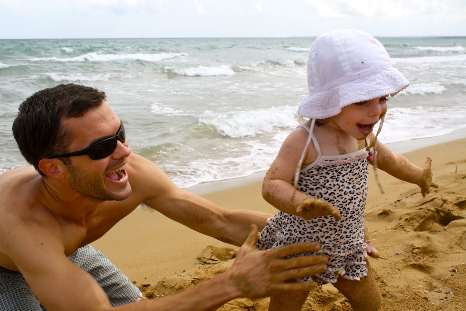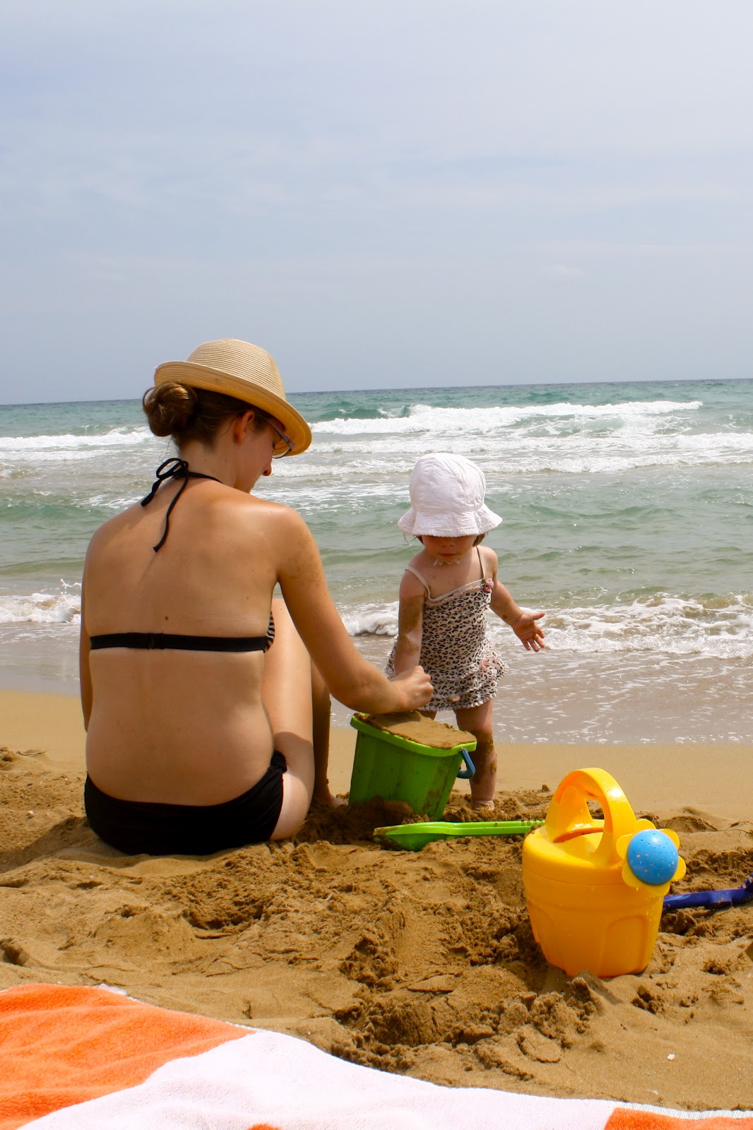 By Sunday morning, though, we had recuperated and were glad we’d agreed to join our friends at the beach for the rest of the Labor Day weekend.  We’ve known this couple since soon after we moved to Sigonella and have enjoyed a deepening friendship this spring and summer.  Emily and Nathan have a darling 9-month-old daughter named Ava and she and Lena were in total awe of each other.  We loved reading in deck chairs at the peaceful hotel, thoughtful conversations over dinner, and building friendships with like-minded people.  Thanks for inviting us, Emily and Nathan!