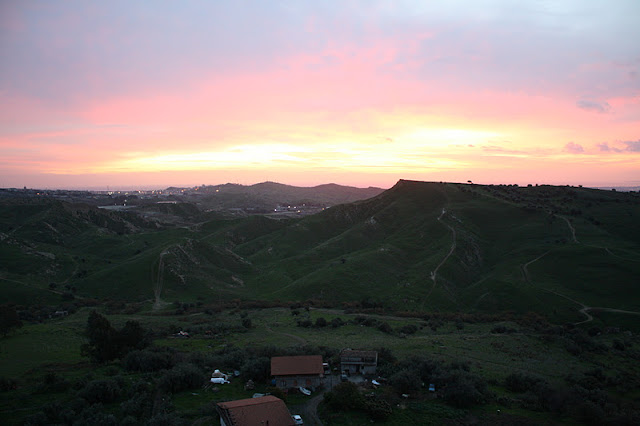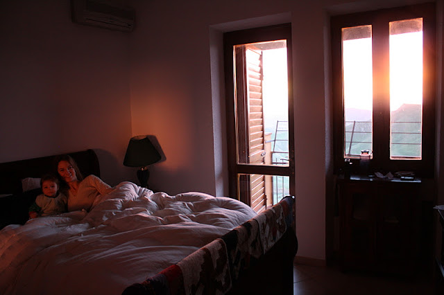 Now, however, two things have happened. 1) Our windows face east, not west, and 2) Lena gets up with the sunrise. This morning, when she awoke as dawn broke over the hills, Elliott jumped up to get her and brought her to our bed for some snuggles. At that point we both turned our attention to the windows and the rising sun. So beautiful coming up from the Mediterranean! Elliott took a few pictures as it crested the hills.