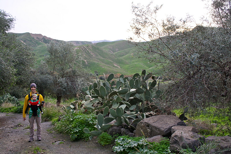 I was definitely game this morning, though. It was only 7:30 and the morning light was calling us! We threw on some pretty random clothes (including a hat I knit for Lena when I was 9 months pregnant and totally forgot about until now) and started off down into the valley.