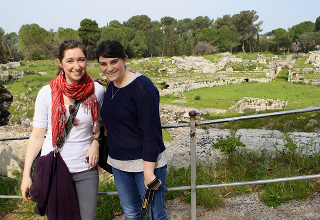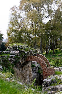 The Greek Theater was surrounded by caves in the hillside around top, and from one of the caves burst this rushing stream. The theater, large enough to seat 1500, looks over the port and towards the Ionian Sea. Workmen appeared to be building makeshift bleachers and a stage over the crumbling ruins of the old theater. I later learned the INDA (the Italian national drama institute) will be performing classical plays here this year! We might have to come back this summer…