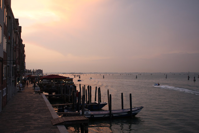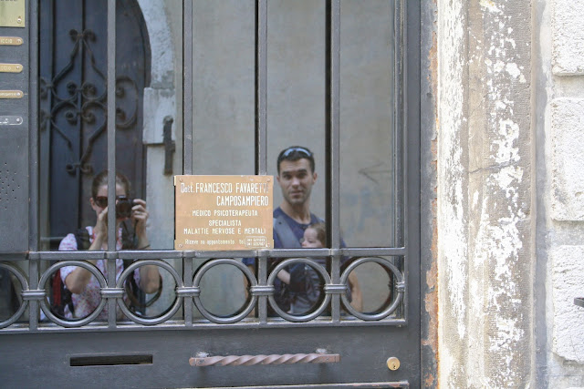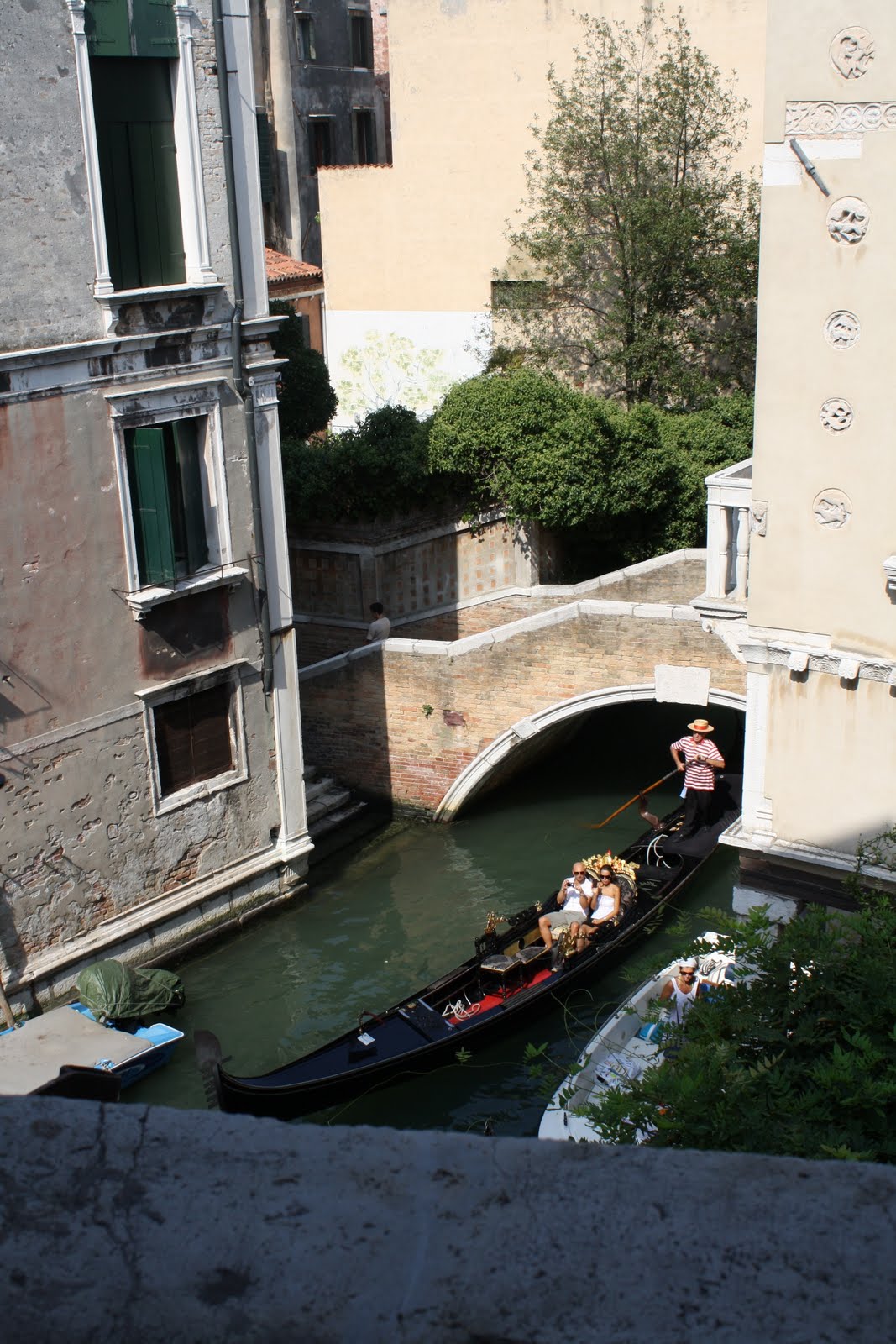The owner of the studio met us at the vaparetto (boat bus from the mainland) and walked us through the winding streets to our apartment. I was dragging a duffel bag and had completely forgotten that Venice was full of canals, and people ride in boats on the canals, and thus the bridges have to arch up, and arched bridges are kind of hard to get a heavy duffel bag over. I huffed and puffed and tripped to the studio because I was too busy eagerly craning my neck in every direction.