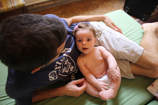 But of course as soon as I tried to lay her gently down on a pad of blankets, she woke up. And studied that pizza, hoping to get a taste! She’s so ready to eat real food.