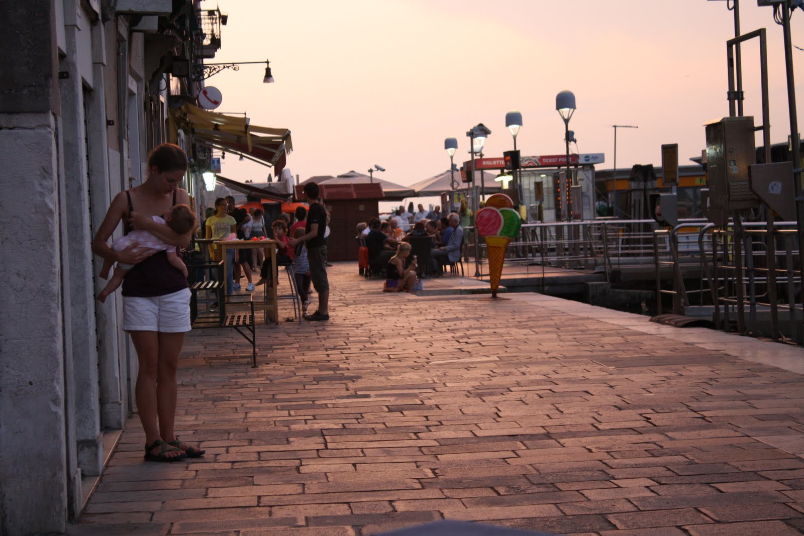 We decided upon a pretty little restaurant by the water on the northern edge of Venice. Lena was getting tired so I rocked her to sleep in my arms.